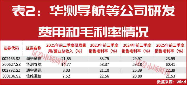 值得一提的是,在收入结构变化不大的情况下,卫星通信公司的毛利率通常较高,且相较于消费电子行业更为稳定。同时,该行业公司研发费用多处于10%-30%区间,技术驱动特征明显(见表2)。
