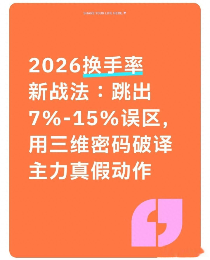 但2026年《程序化交易管理实施细则》落地后,量化资金与游资博弈加剧,传统换手率战法早已失效。本文将打破“看数字定买卖”的惯性思维,独创“绝对换手+筹码结构+场景验证”三维体系,结合2026年最新实战案例,教你读懂主力吸筹、洗盘、出货的核心逻辑,让高胜率交易有迹可循。